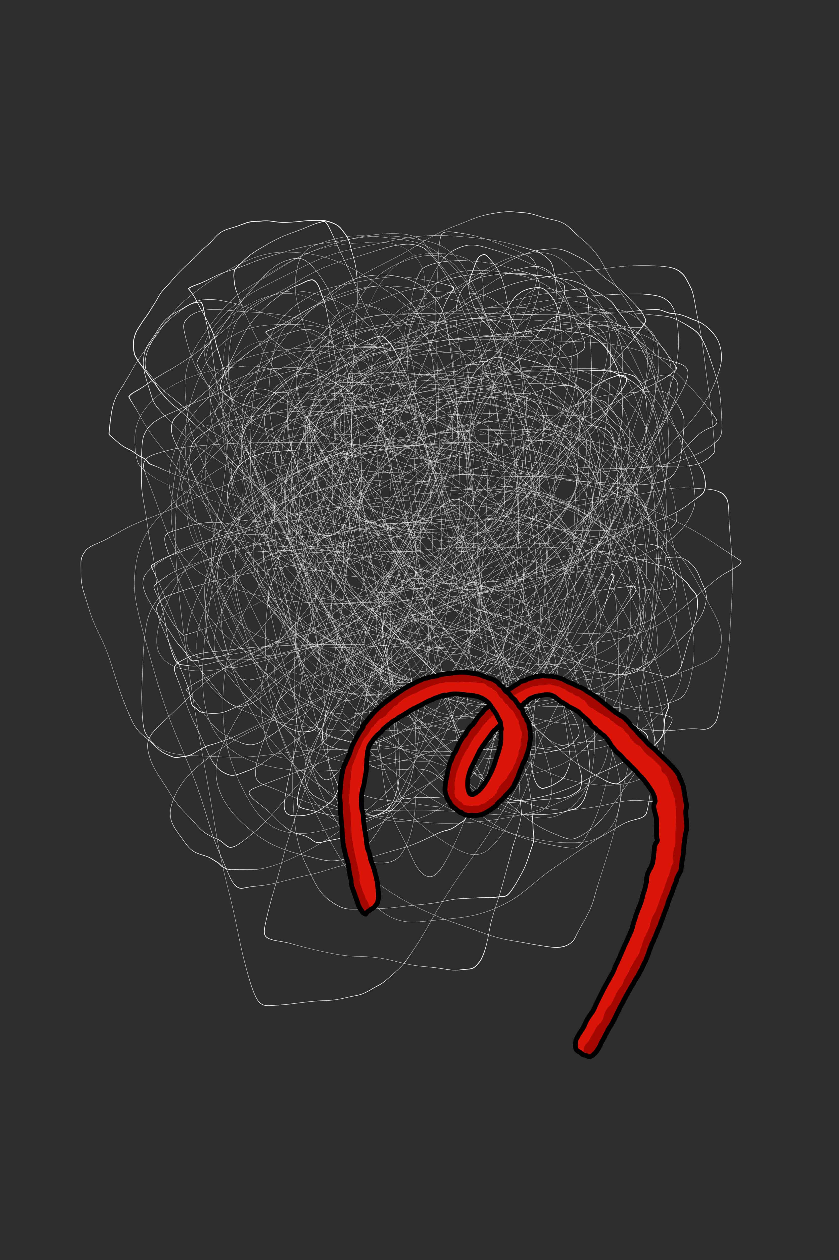 Sus paletas alternan entre rojos vibrantes, naranjas y amarillos, colores intensos que pulsa con seguridad, para contrastarlas con monocromías sueltas y redundantes en blanco y negro, revelando equilibrios inesperados entre el caos y el orden.
