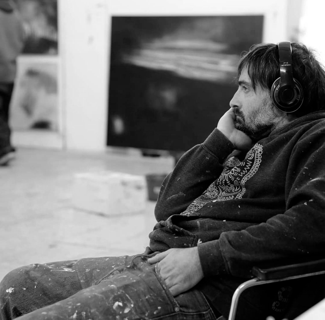 (Santiago, 1972) es un pintor chileno que vive y trabaja en Barcelona desde 1999. Sus lienzos combinan óleo, acrílico, aerosoles y marcadores en composiciones que capturan el ritmo de la ciudad como un sismógrafo visual que da cuenta del traqueteo de la rutina y la compleja gestualidad del caos y lo incierto.